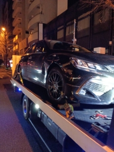 東京都港区にて、トヨタ マークXのレッカー移動のご依頼をいただきました。