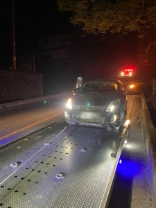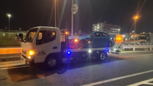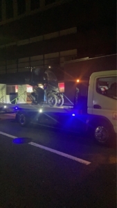 深夜の都心部での突然の事故ということで、MM様も大変動揺されてご不安な様子でしたが、迅速に駆けつけて安全に車両を回収できたことで、少しホッとされたご様子でした。
