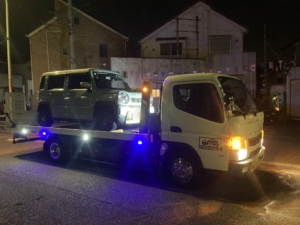 夜間の路上ということもあり、まずは後続車への安全を十分に確保した上で作業を開始。お車を傷つけないよう慎重に積載車へ固定し、お客様ご指定の整備工場まで安全に搬送いたしました。「深夜にどうなることかと思った」とご不安な様子でしたが、迅速な対応に安心していただけました。
